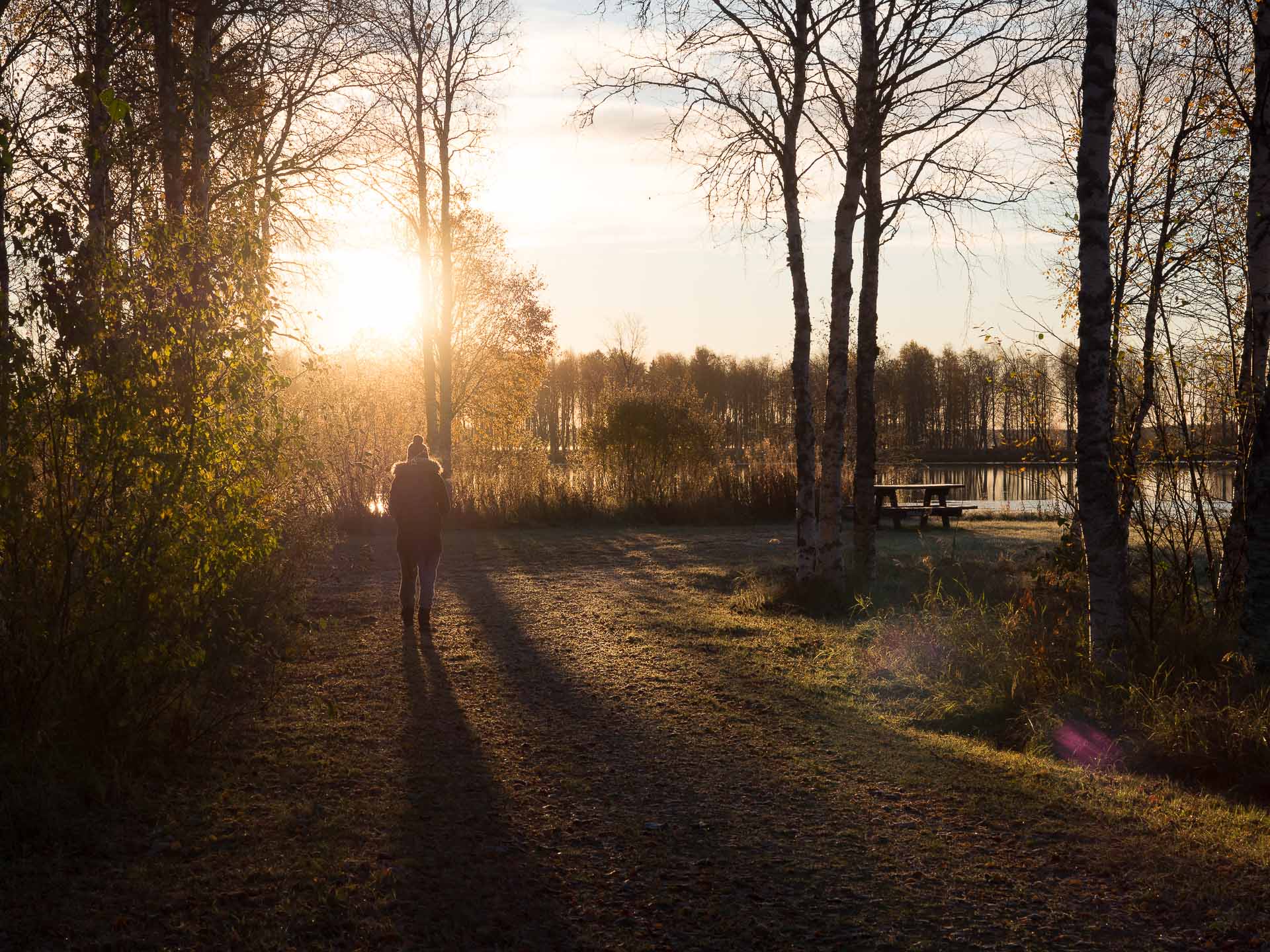 Päivät lyhenevät lyhenemistään ja pakkasista huolimatta olemme edelleen hyödyntäneet kaikki mahdolliset aurinkoiset hetket ulkona oleskeluun ja kuvaamiseen. Tänäänkin aamulla ponkaisin ylös aikaisin katselemaan auringonnousua Kuusamojärvellä.