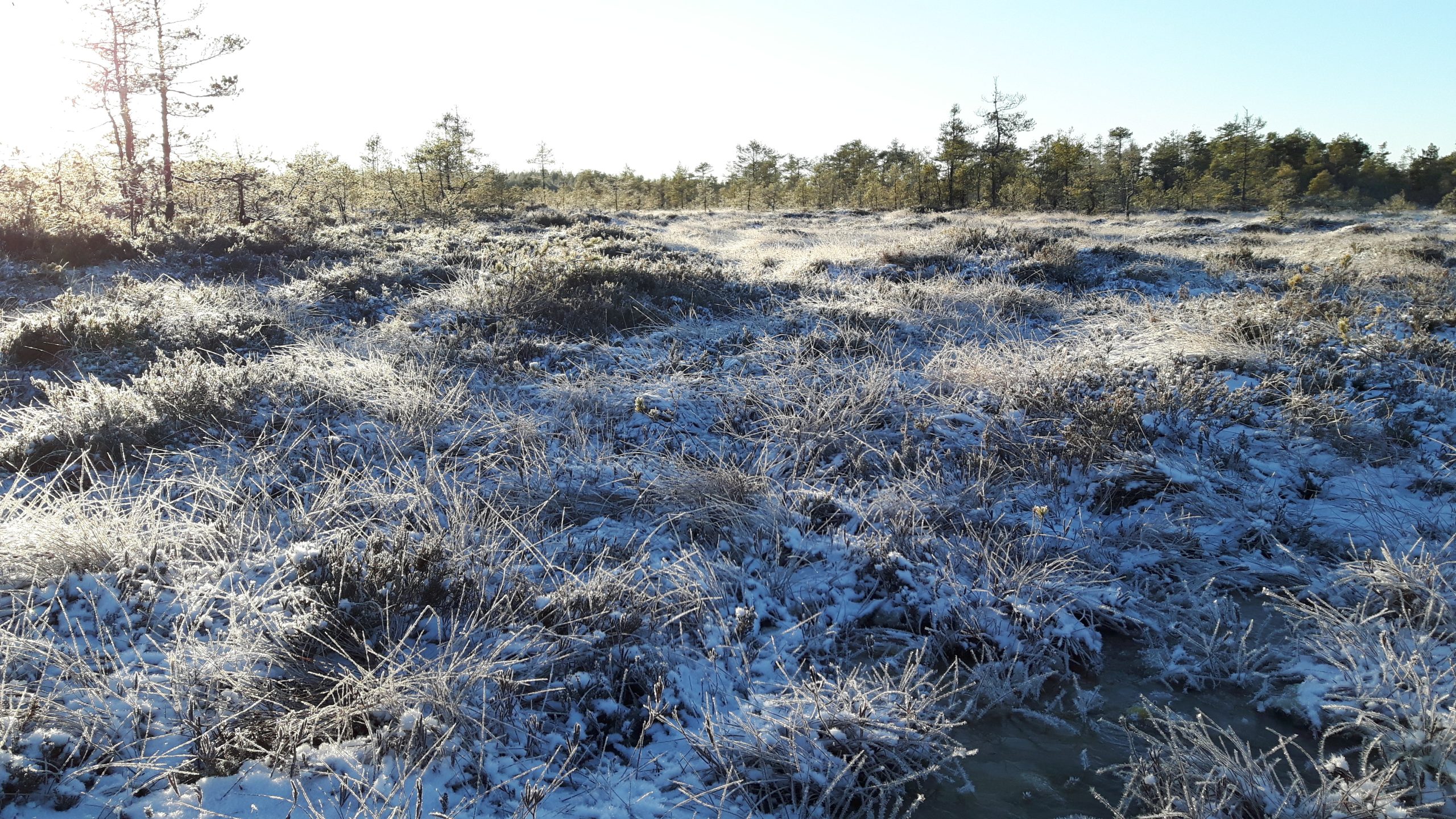 Sunnuntai-aamun valjetessa edelleen hyvin kylmänä, havaitsin oletukseni maisemalaavusta oikeaksi. Ulkona oli käsittämättömän kaunista (kuvat kirjoituksen ylälaidan hyrrässä). Pakkasta oli edelleenkin -12c ja kylmä tuntui vieläkin reippaasti omassa kropassani. Varpaiden ja sormien jäätyessä otin joitakin kuvia ympäröivästä suomaisemasta.