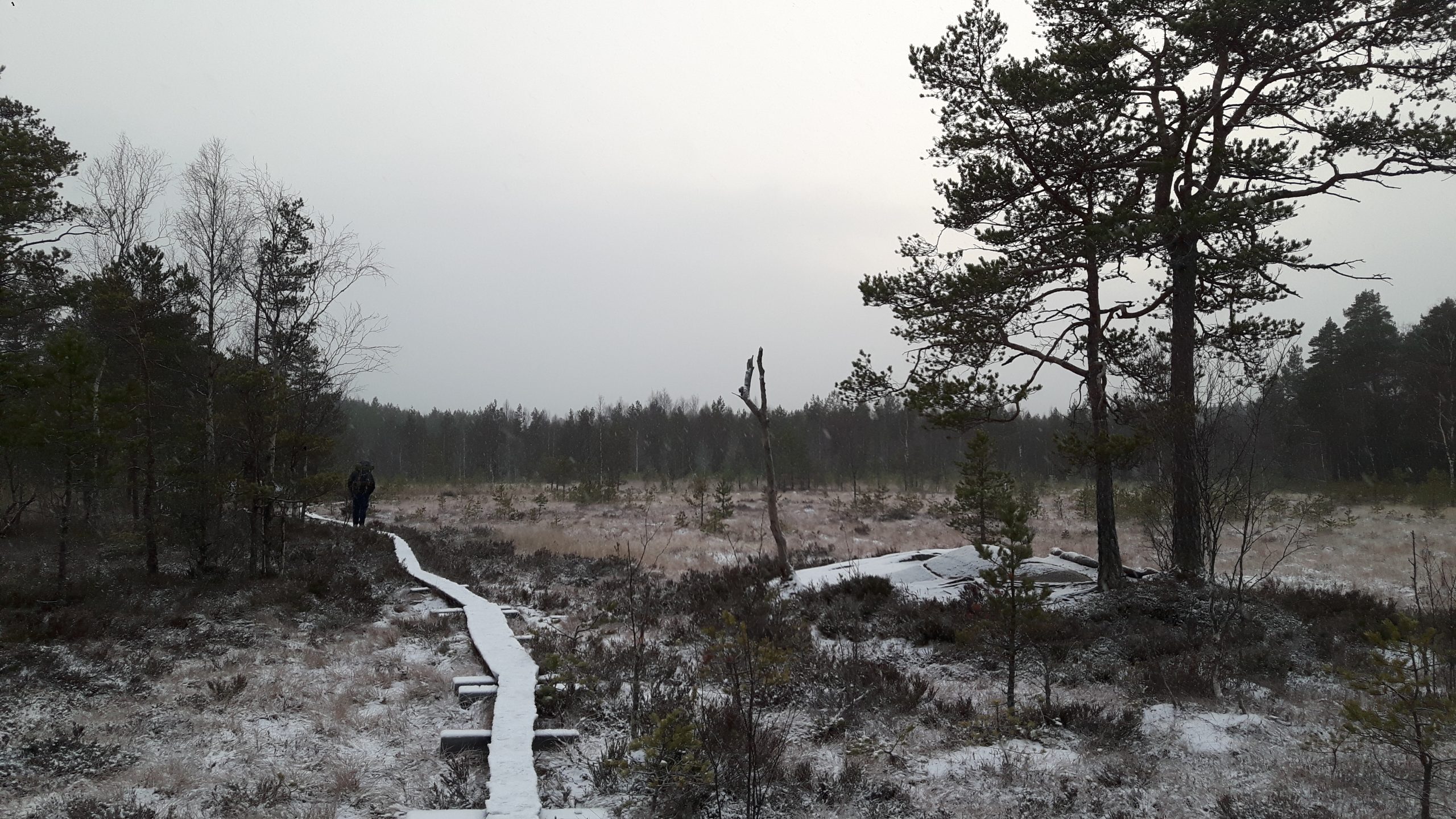Talviretkeily on Etelä-Suomessa kiehtovaa. Ulkona on useasti hyvin pimeää, luonnossa yöpyjiä ei todennäköisesti ole itsesi lisäksi juurikaan liikkeellä ja sääolosuhteet voivat yllättää melkoisesti. Saatat joulukuussakin tai peräti tammikuussa saada varautua vesisateisiin ja tummaan lumettomaan metsään. Ilmaston lämpenemisen myötä ilmasto on muuttunut jo Suomessa ja se näkyy etenkin vähälumisina talvina täällä etelässä. Jos olet säiden suhteen onnekas, saat kuitenkin retkeillä rapsakan kylmässä pakkassäässä kuuran ja kevyen lumen valaistessa pimeää maisemaa. Pahimmillaan saat kahden vuorokauden retken aikana kokea nämä kaksi ääripäätä, niin kuin meille kävi joulukuun laavuretkellä Teijon kansallispuistossa Salon lähistöllä.